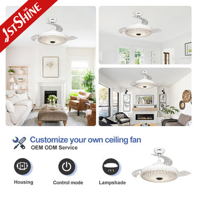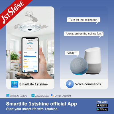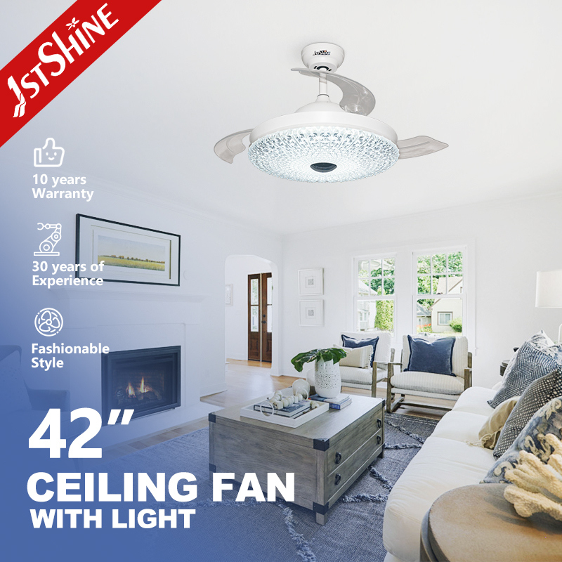 Die einziehbaren Acrylblätter fahren automatisch aus, wenn der Ventilator eingeschaltet ist, und ziehen sich aus, wenn er ausgeschaltet ist, wodurch ein sauberes, kronleuchterartiges Aussehen erhalten bleibt. Der Acryl-Lampenschirm im Kristall-Stil verbessert die Lichtstreuung und verleiht jedem Innenraum eine luxuriöse Note.